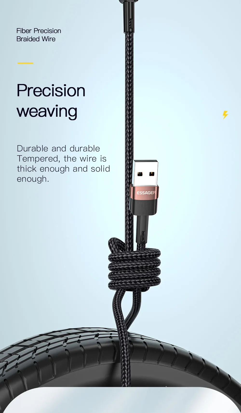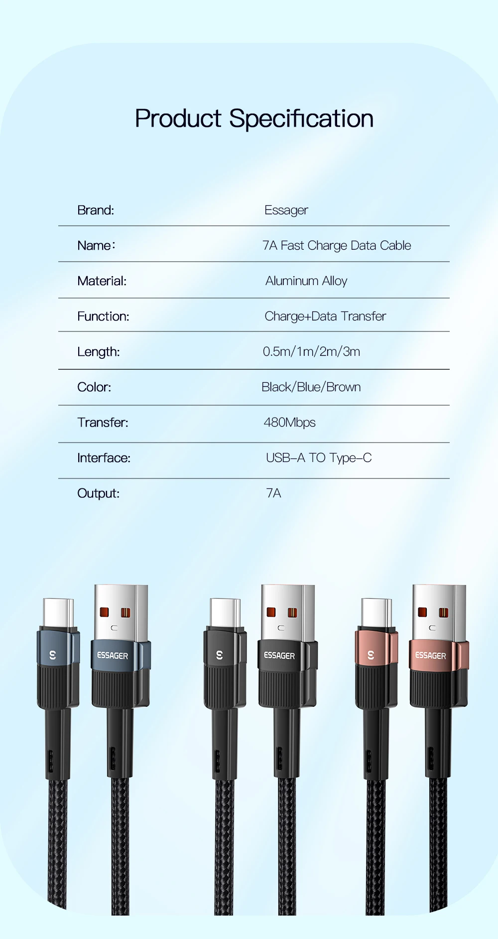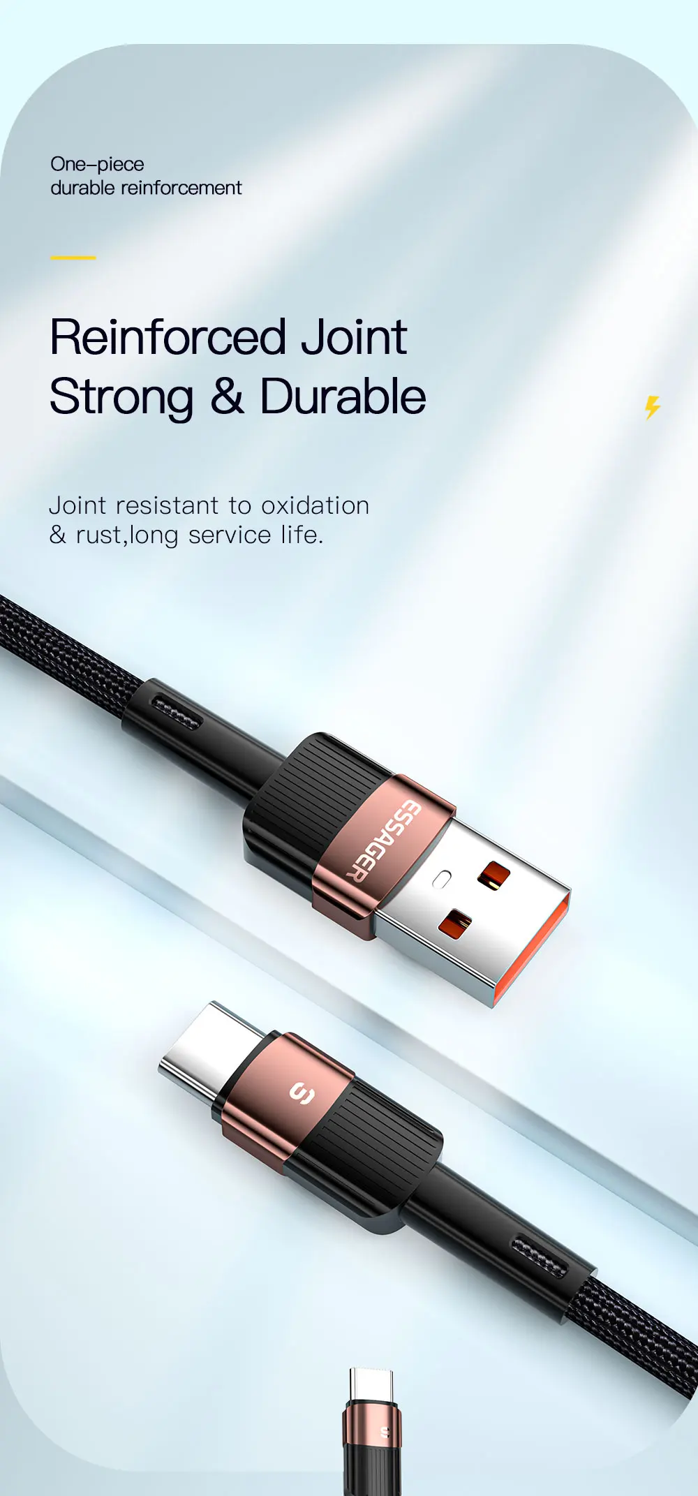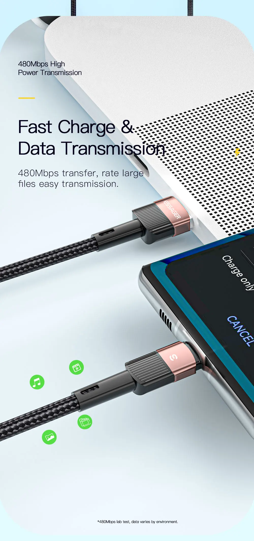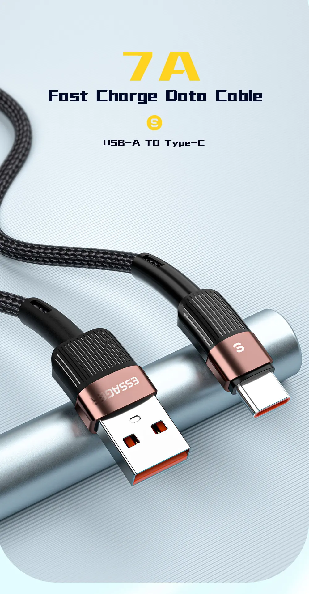 Cable ESSAGER USB A a USB C integrado en chip inteligente, que garantiza una carga segura de hasta 80W (11V/7.3A) de salida de potencia para sus teléfonos móviles a toda velocidad. Recomendado para equipar con el cargador original de sus dispositivos, disfrutará de la carga de alta velocidad.