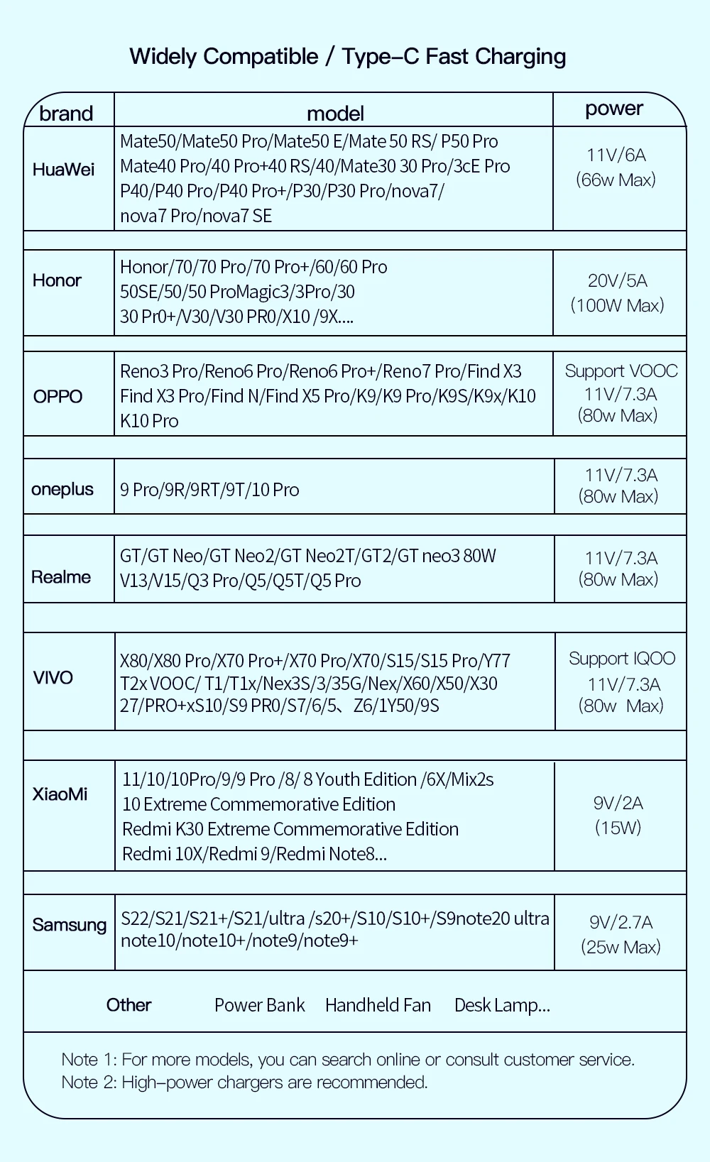 Para teléfonos móviles de la serie OPPO / Oneplus/que admiten el Protocolo de carga rápida VOOC.
