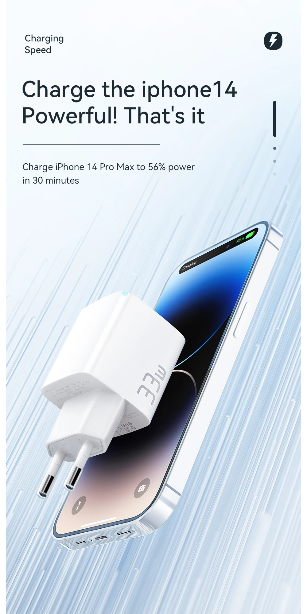 • Potencia de 33W : Con una potencia de carga de hasta 33W, este cargador ofrece una carga rápida y eficiente para tus dispositivos. Ya sea tu iPhone 14, 13 Pro Max, Macbook o Xiaomi, este cargador se encargará de cargarlos rápidamente.