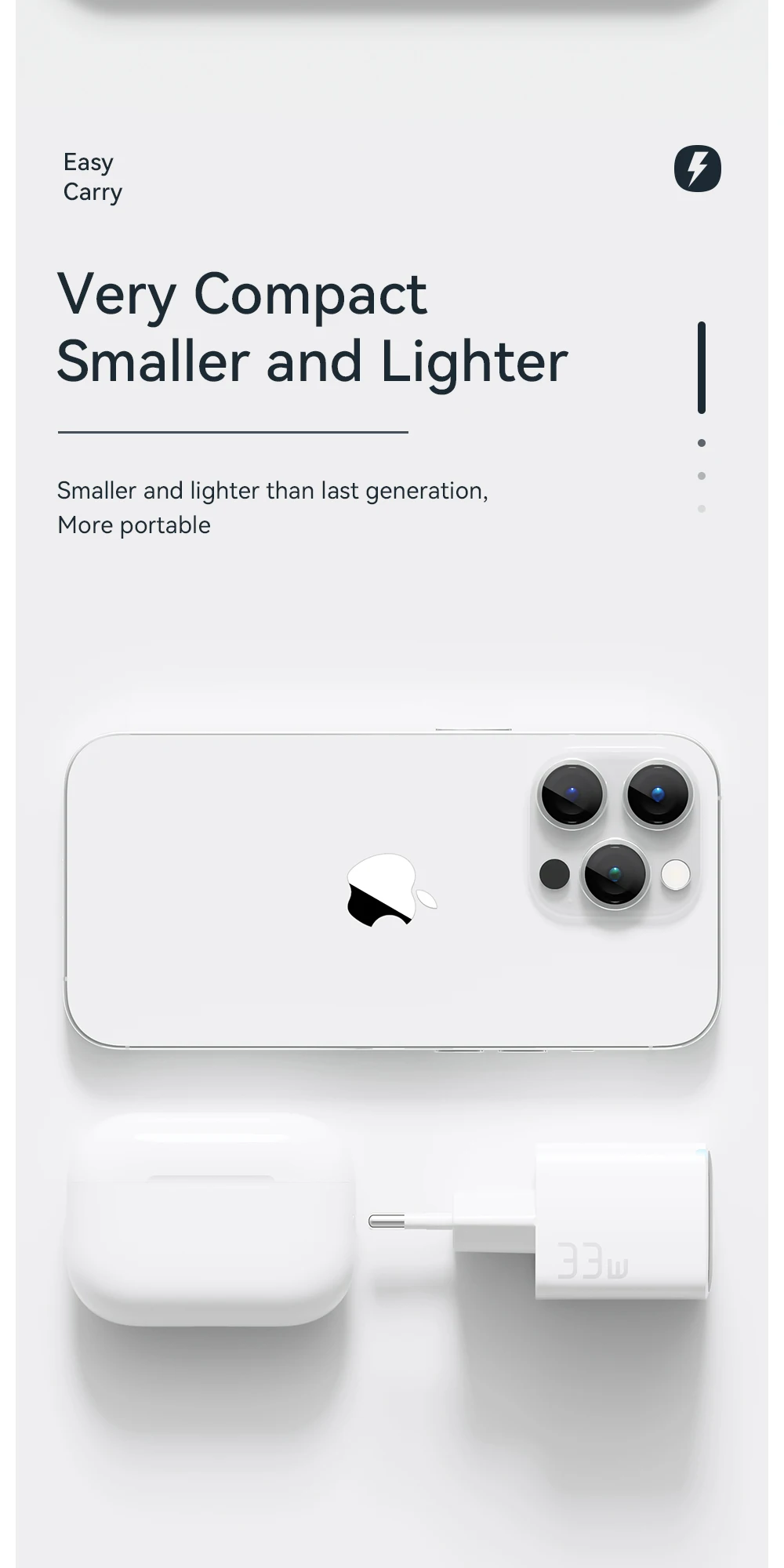 El Cargador Rápido GaN de 33W Essager combina potencia, eficiencia y portabilidad en un solo dispositivo. Si buscas un cargador que te brinde una carga rápida y segura para tus dispositivos Apple y Xiaomi, este cargador es la elección perfecta. Aprovecha al máximo tus dispositivos y nunca más te quedes sin batería. ¡Ordena el tuyo ahora y experimenta la diferencia!