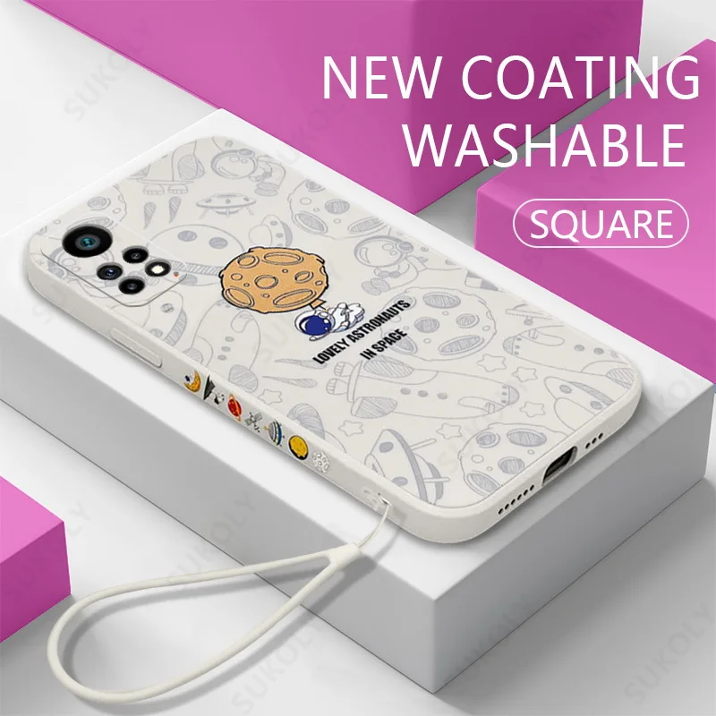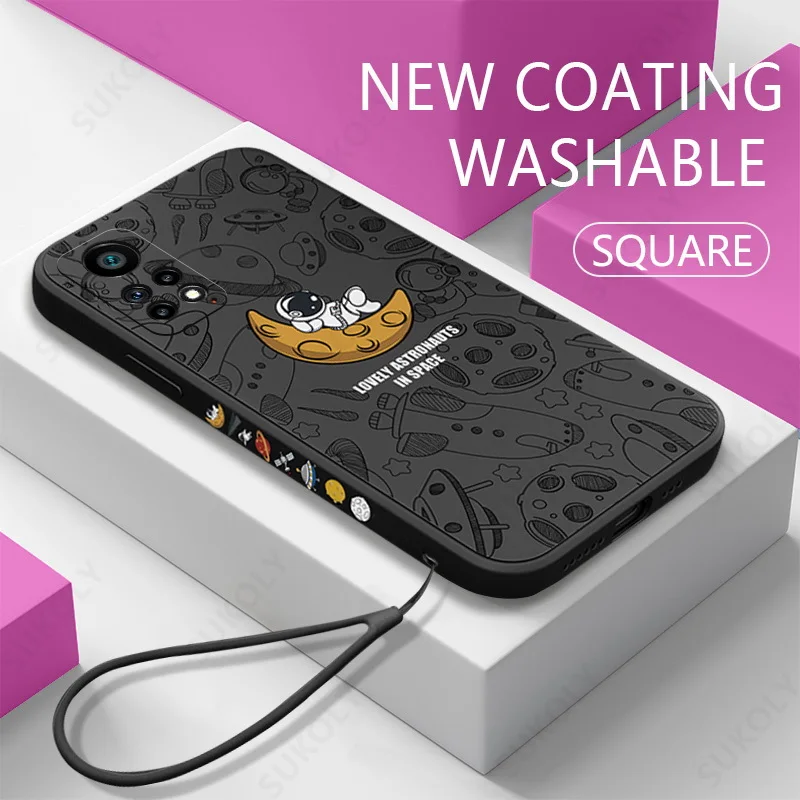 Funda con cordón de astronauta para Xiaomi Redmi Note 10, 9, 8 Pro, 9s, 11s, 11E, 12, Mi 11 Lite, 5G, NE, 11T, Poco X3, X5 Pro, funda con correa de mano