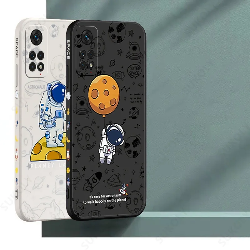 Cute Astronaut Phone Case For Xiaomi Redmi Note 10 9 8 Pro 9s 9A 9T Poco X3 NFC Mi 11 Lite 5G NE Coque Soft Cover