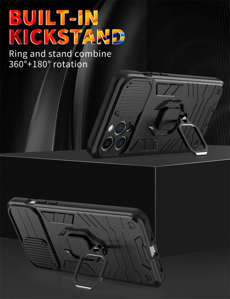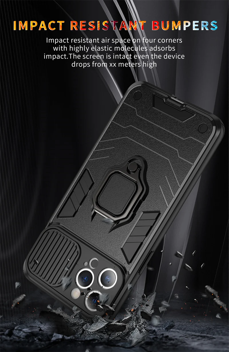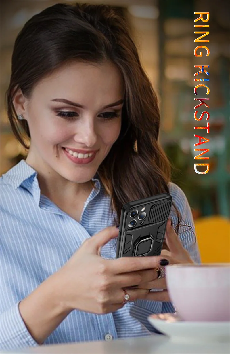 Funda de teléfono con soporte de protección para cámara, carcasa a prueba de golpes para iPhone 14, 13 Pro, Max, 11, 12, XS, Max, X, XR, 13