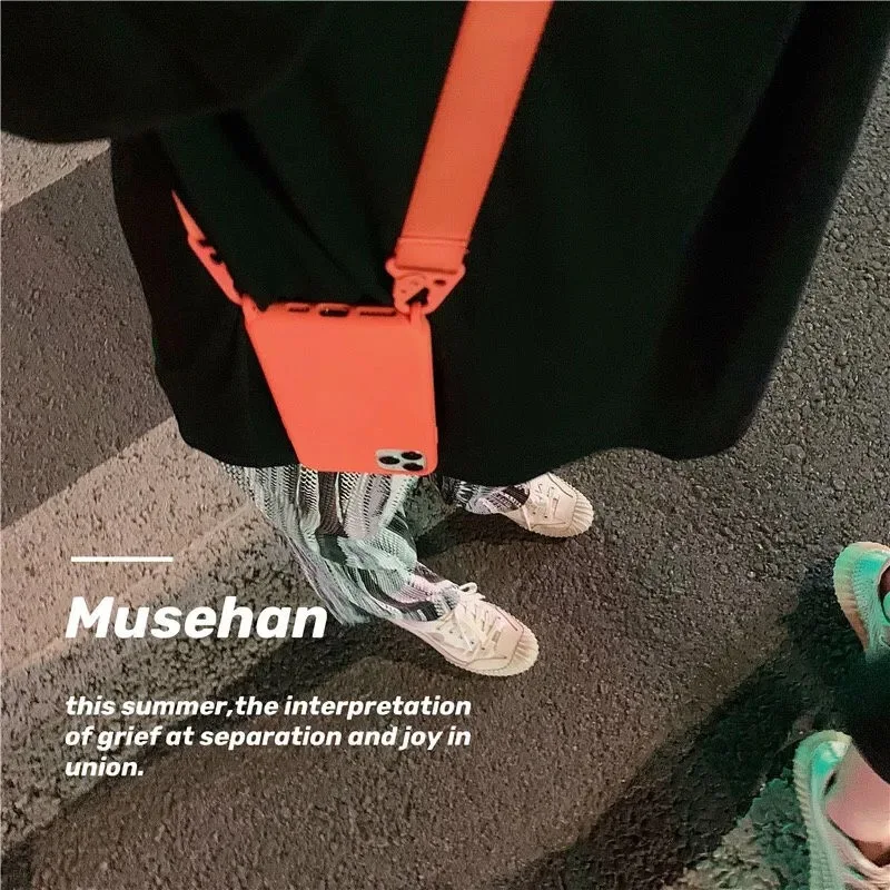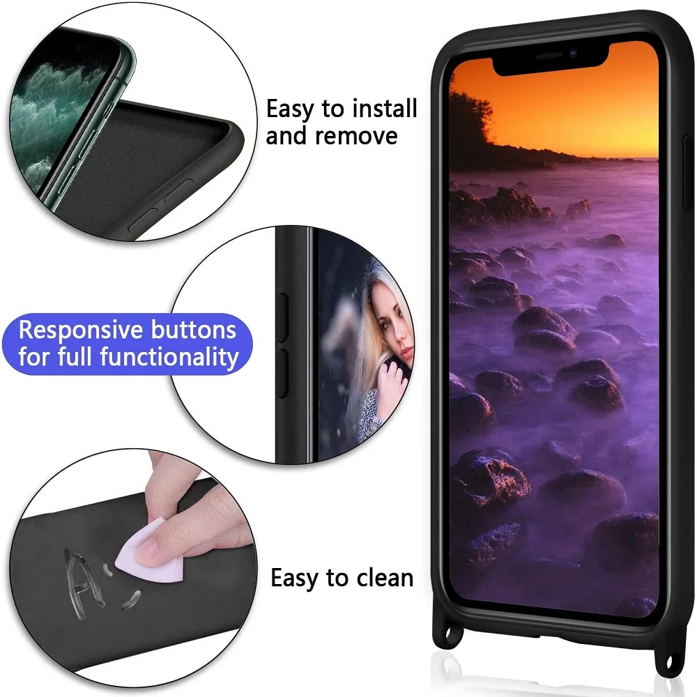 Funda de teléfono de silicona con correa de collar cruzado, cordón para iPhone 15 Pro, 13, 12, 14 Pro Max, X, XR, XS Max, 6S, 7, 8 Plus