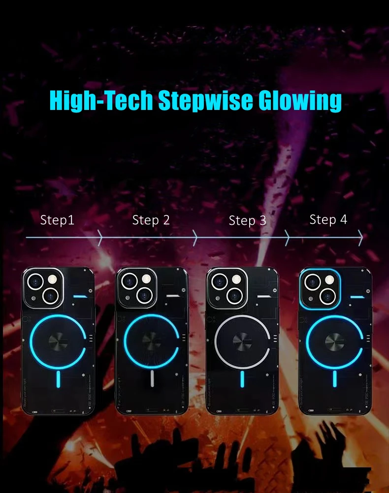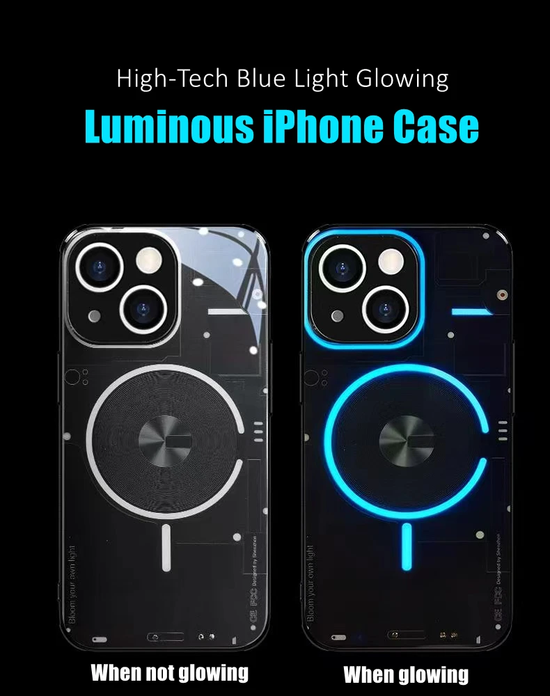 Funda de teléfono recargable de alta tecnología LED, luz azul brillante, luminosa, a prueba de golpes, para iPhone 11, 12, 13, 14 Pro Plus Max